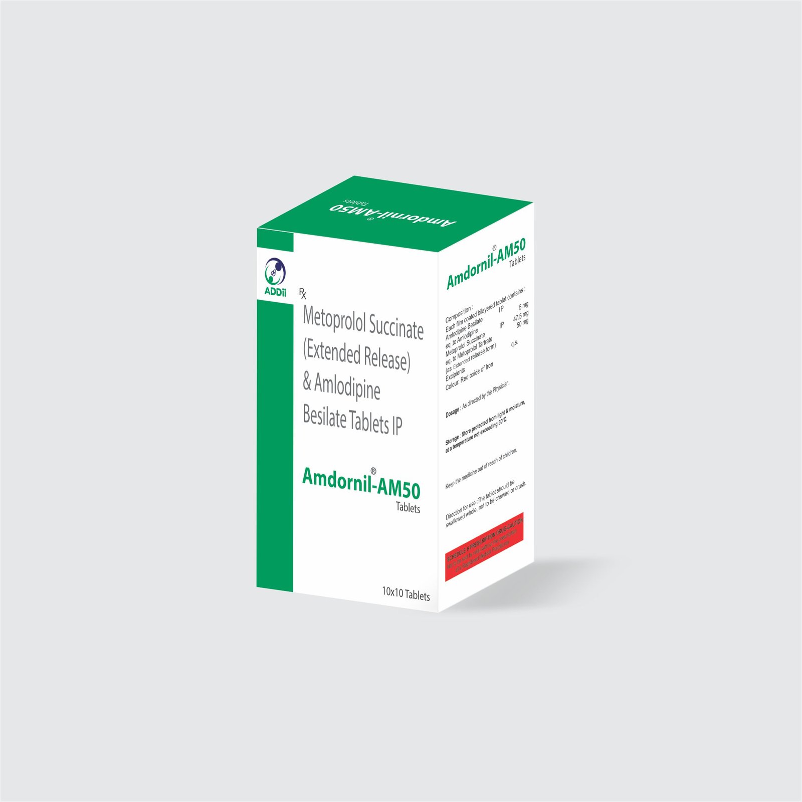| AMDORNIL-AM Tablets | Metoprolol Succinate 25/50 mg + Amlodipine 5mg | 1x10 |